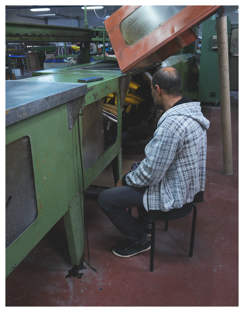 Tot comença amb el cautxú de la sola. Utilitzem cautxú natural procedent de Sri Lanka per la seva qualitat, flexibilitat i resistència. A partir d’aquí, duem a terme el procés de vulcanització, mitjançant el qual la sola es fusiona directament amb el tall, la part superior de la sabata, a través d’altes temperatures. La sola no s’enganxa. La sola no es cus esperant que aguanti. La sola i la sabata es fonen en una sola peça. S’uneixen per sempre. (Que romàntic, oi?)
