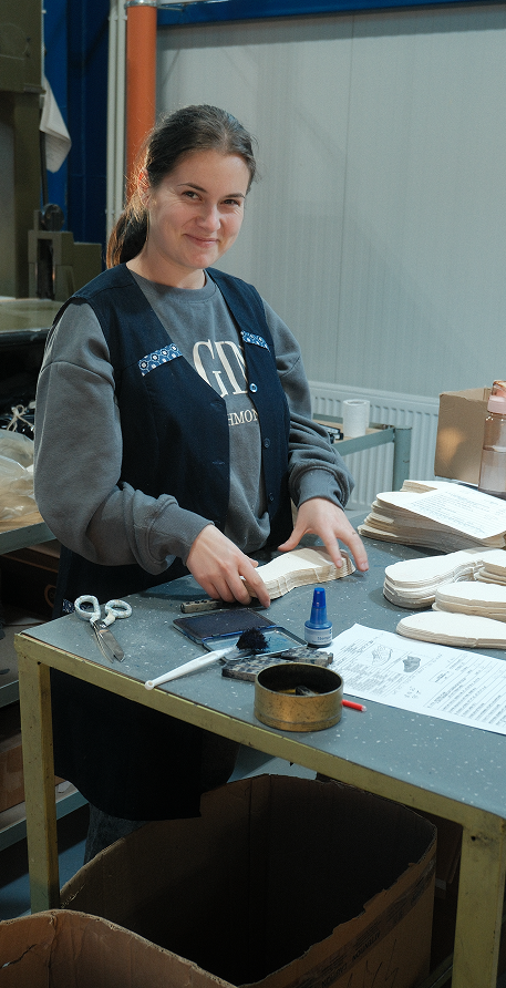 També preferim gaudir del paisatge quan hem d’enviar els nostres productes. Les sabates d’Aro no viatgen en avió, només les enviem per terra dins d’Europa, ja que prioritzem reduir les emissions de carboni abans que fer-te-les arribar a correcuita. Els mètodes que fem servir per a transportar-les són més lents i tenen menys impacte, cosa que té sentit per a sabates que mai han estat dissenyades per a anar amb presses.