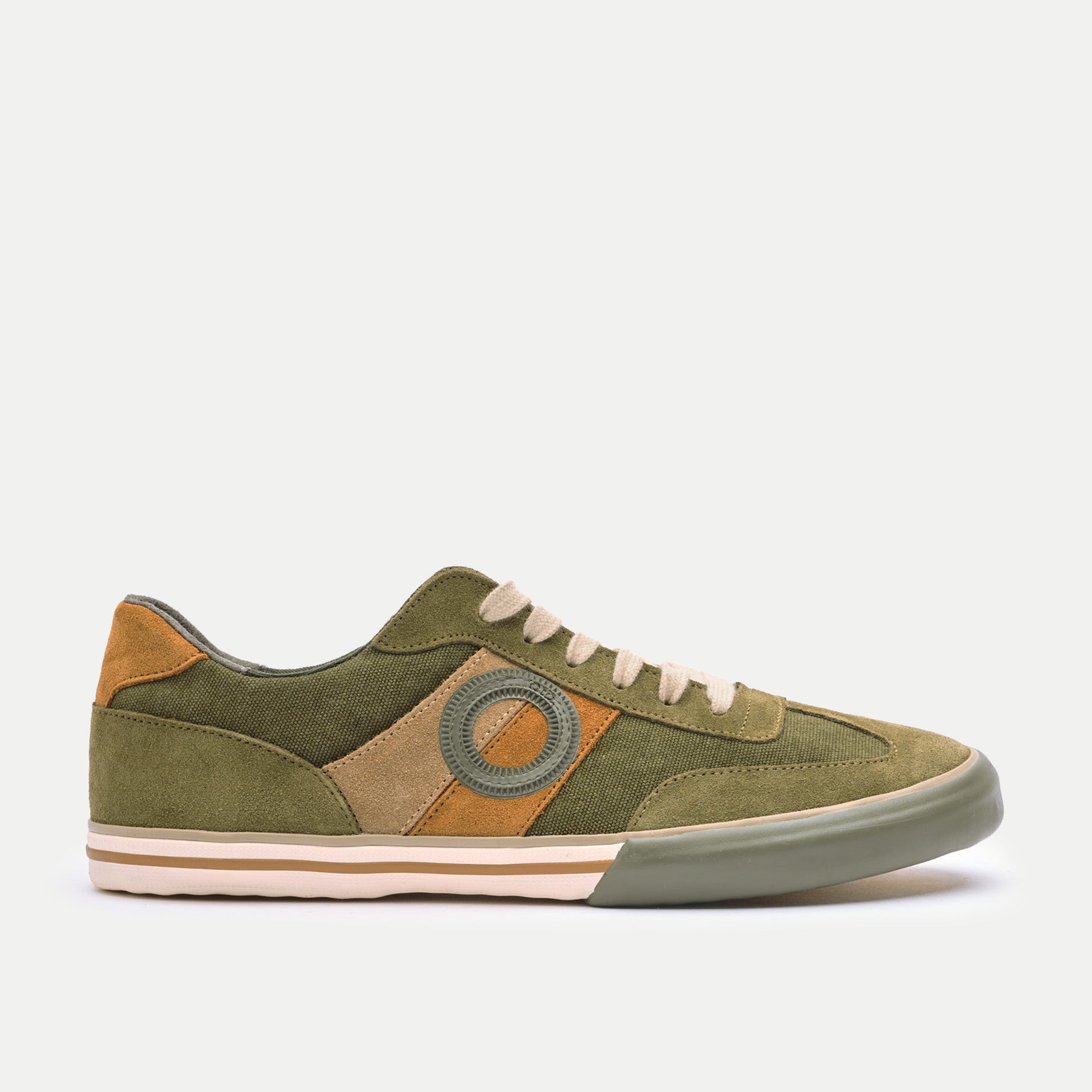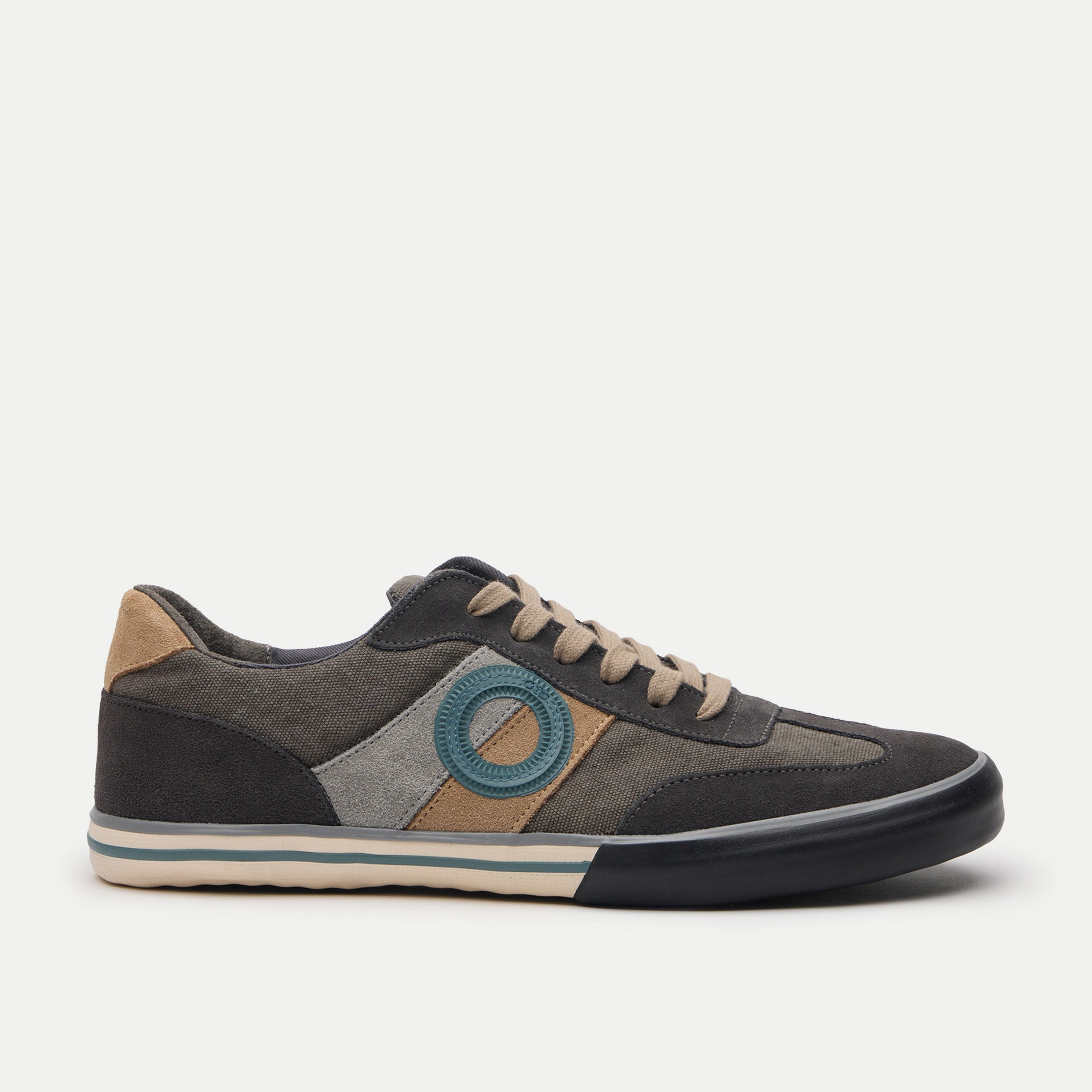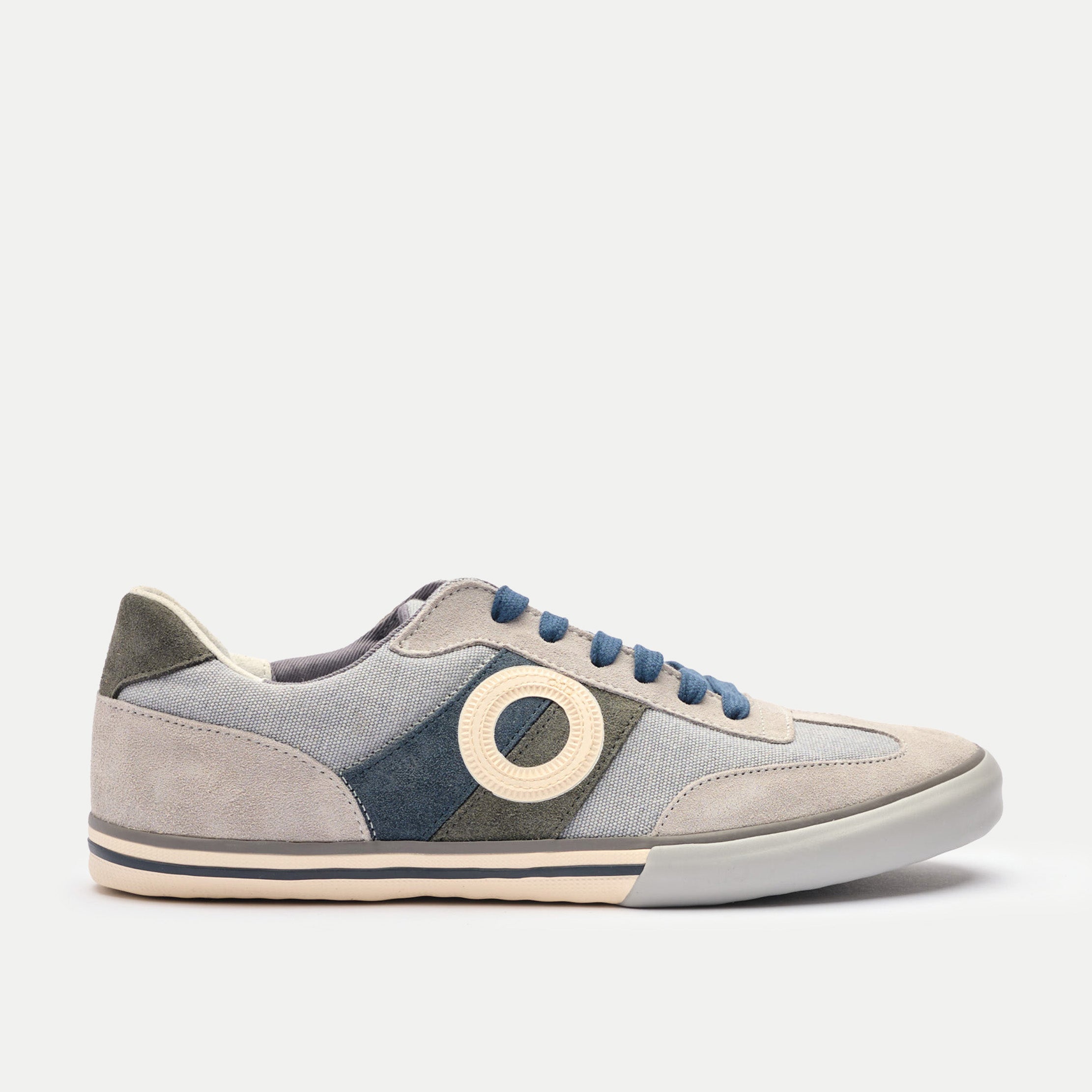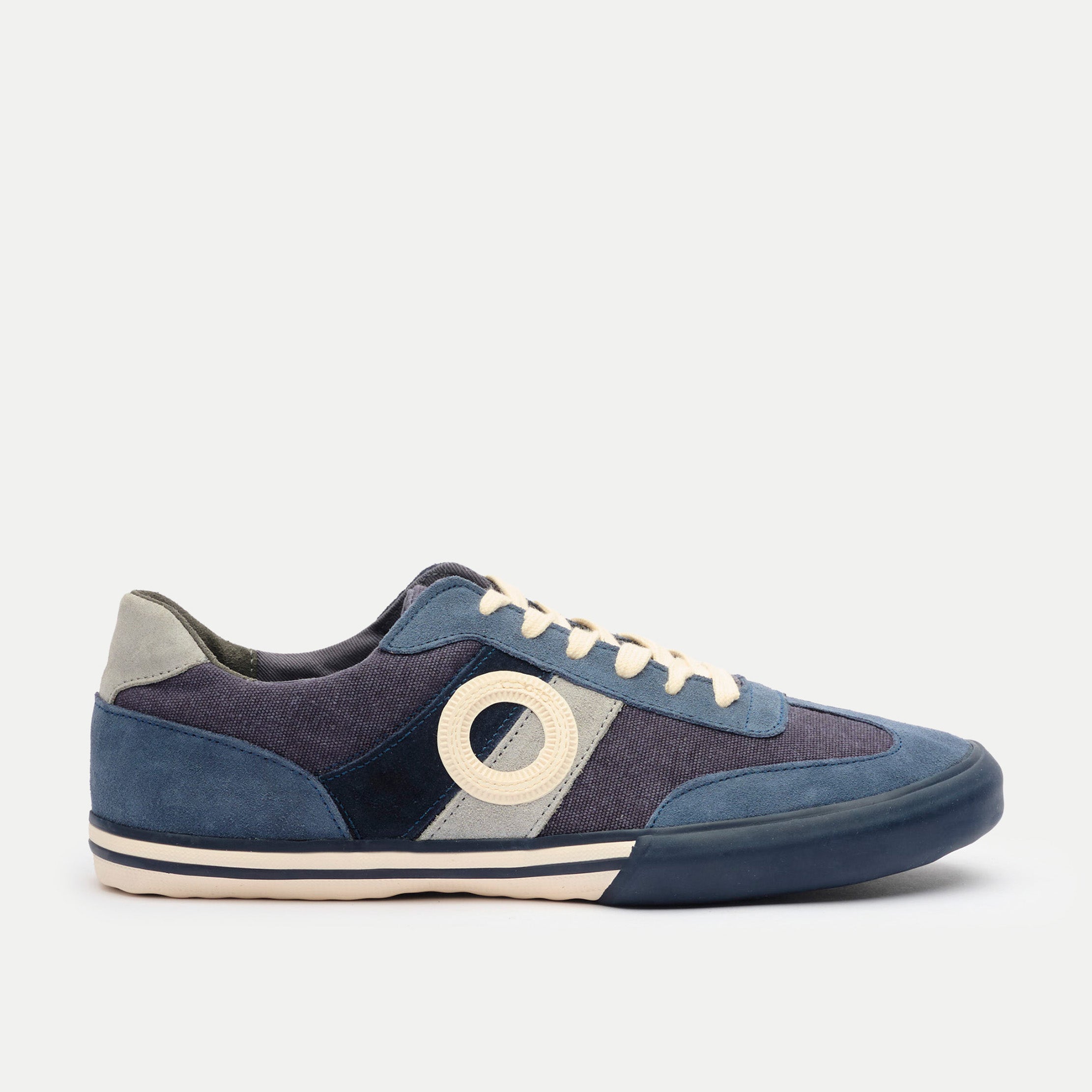 Eine klassische, vertraute Form in tiefem Marineblau, gefertigt aus Wildleder und Segeltuch für ganztägigen Komfort und zeitlosen Stil.