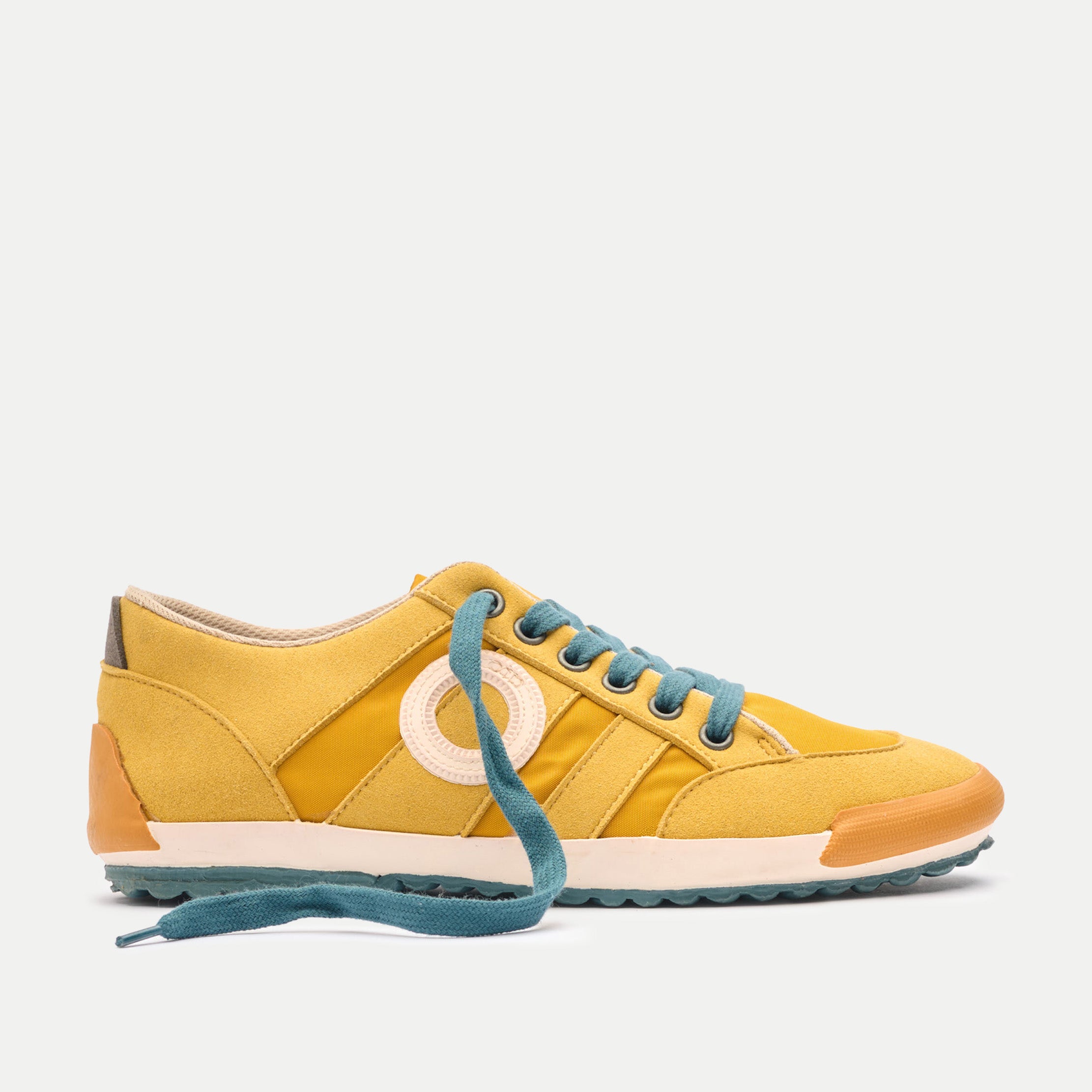 Erhelle jeden Schritt. Ido Wolverin Vegan in Safran hält deine Füße bequem und deine Bewegungen bewusst - 100% vegan, 100% Stil.
