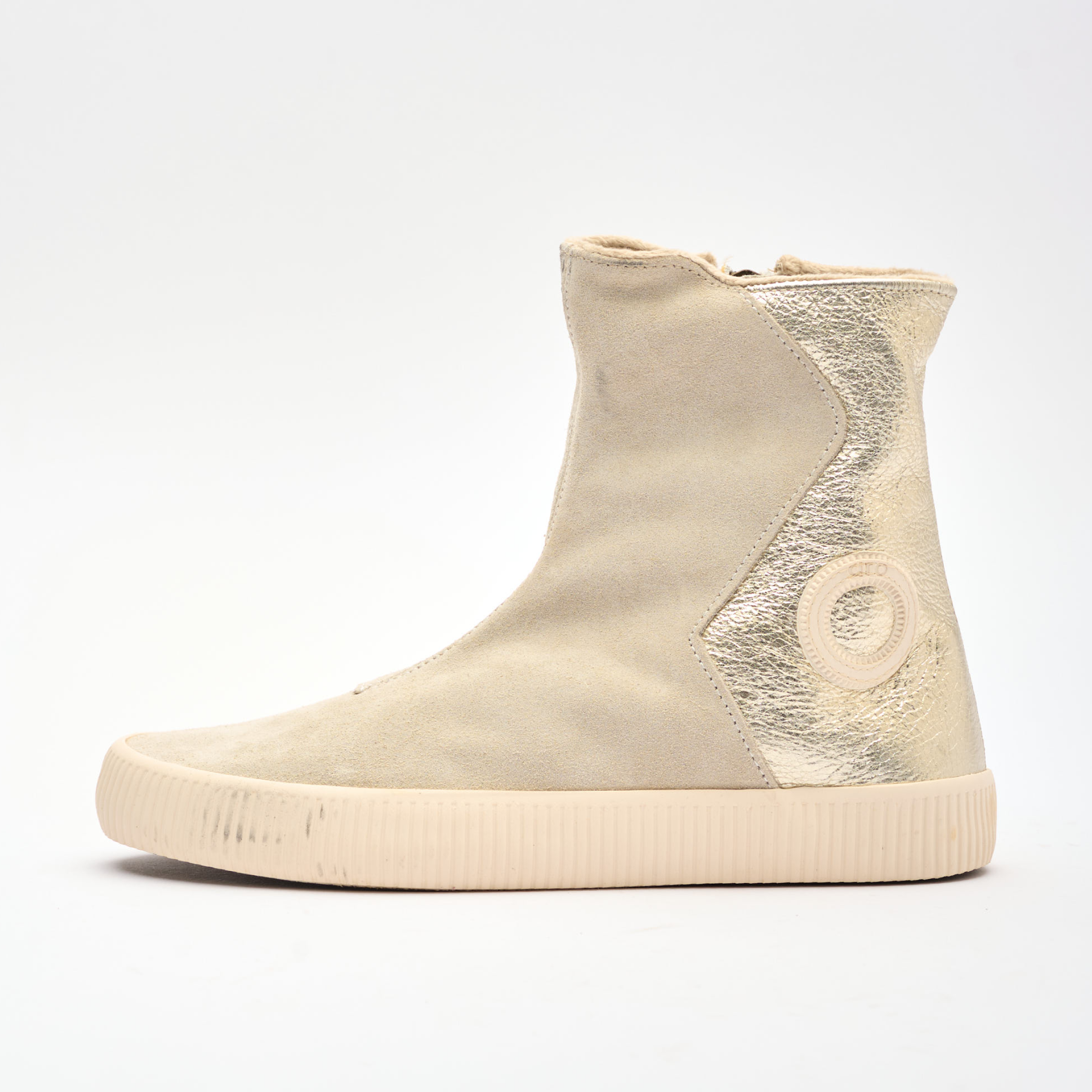 Edge meets effortless. The Noelle Suede in Taupe brings jagged suede panels, a side zip, and ribbed soles — minimal, modern, and neutral enough to go with everything.