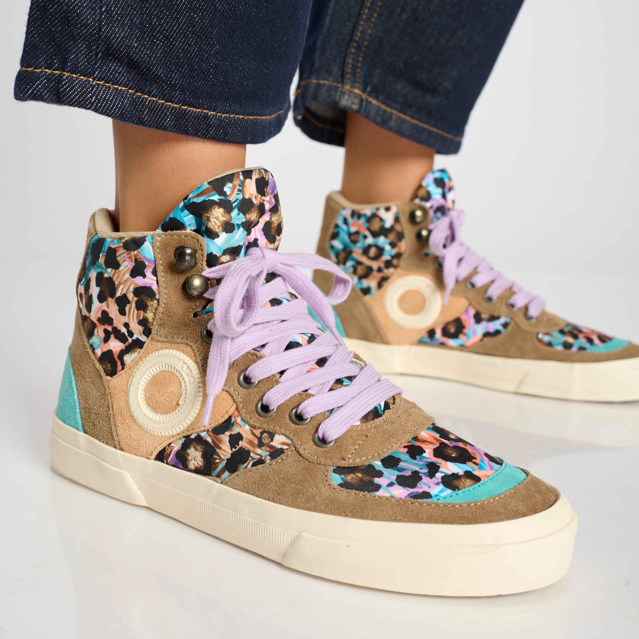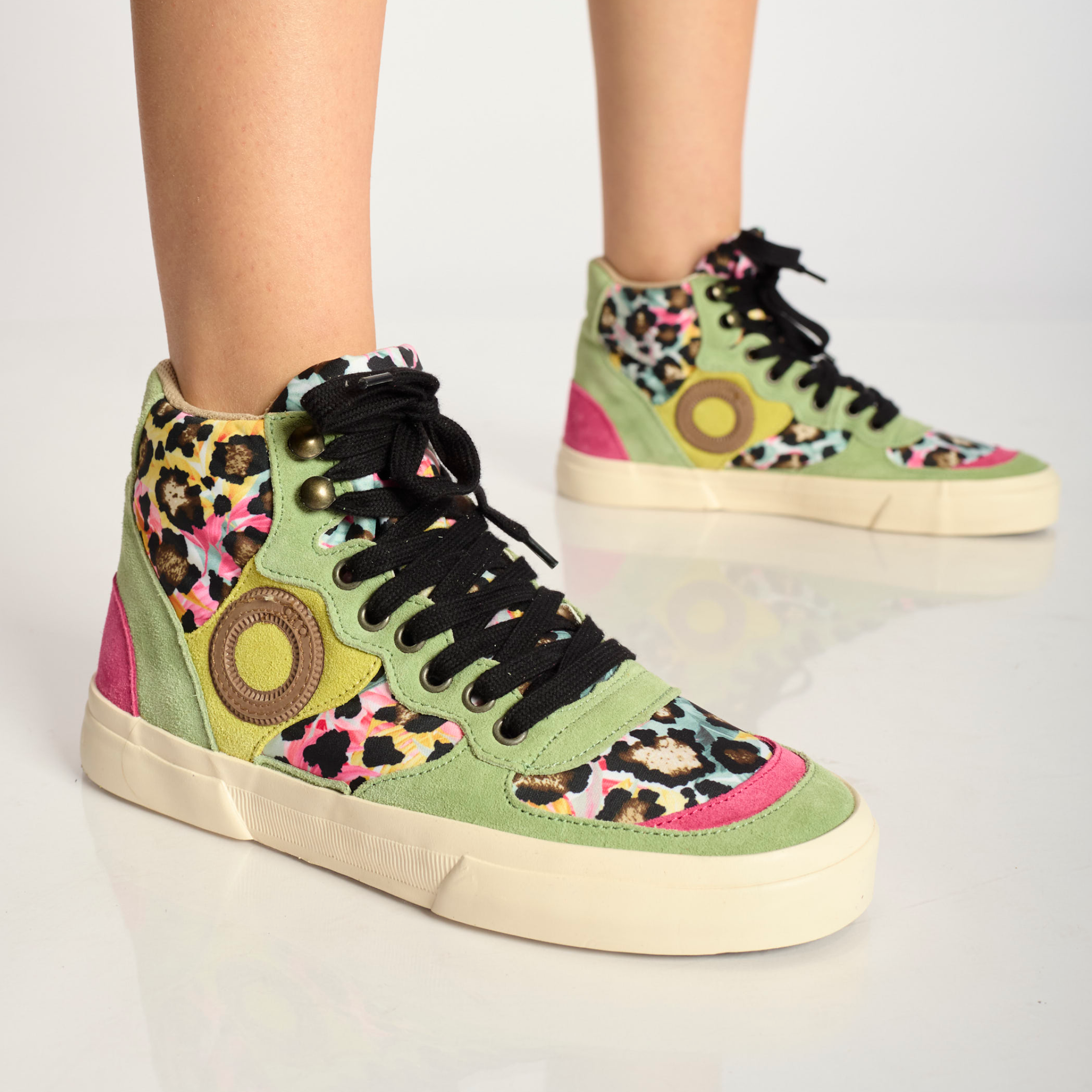 Bright, bold, and impossible to ignore. The Emma Alba in Rainbow takes the classic high-top and infuses it with vibrant energy—comfortable, confident, and made to stand out.