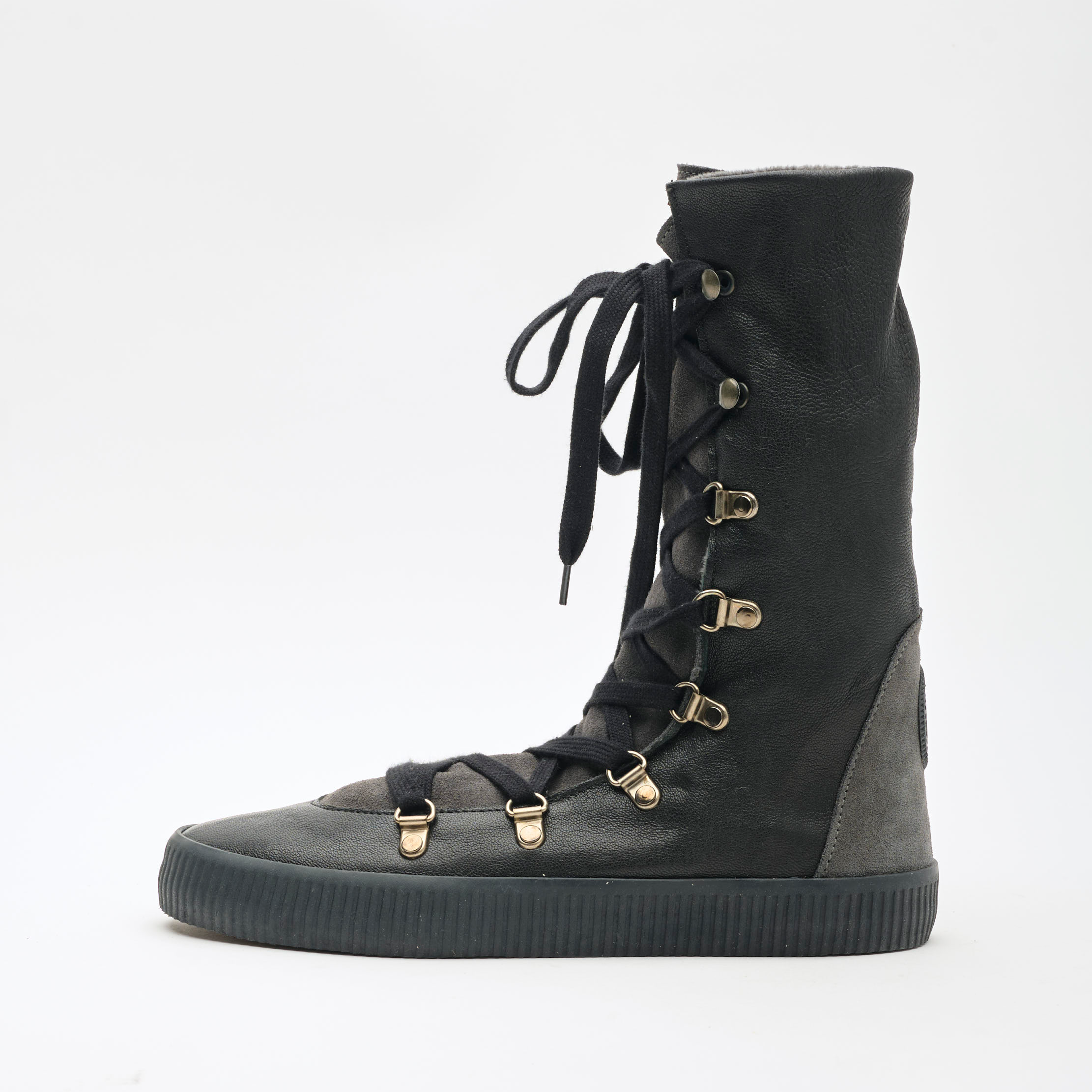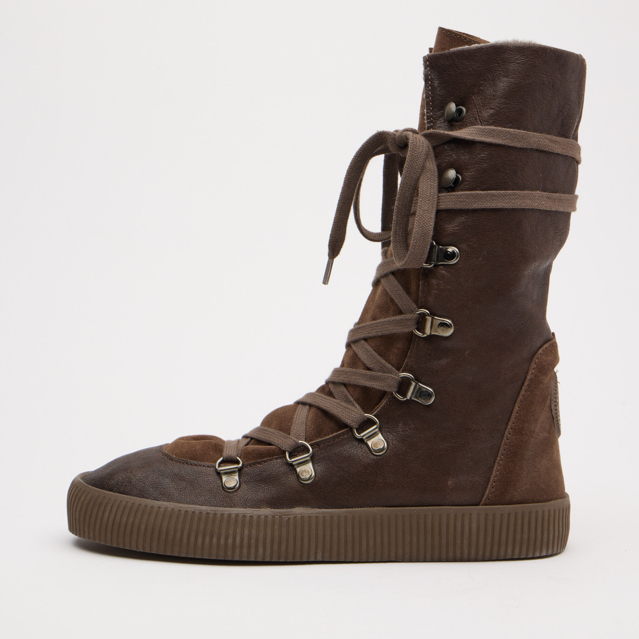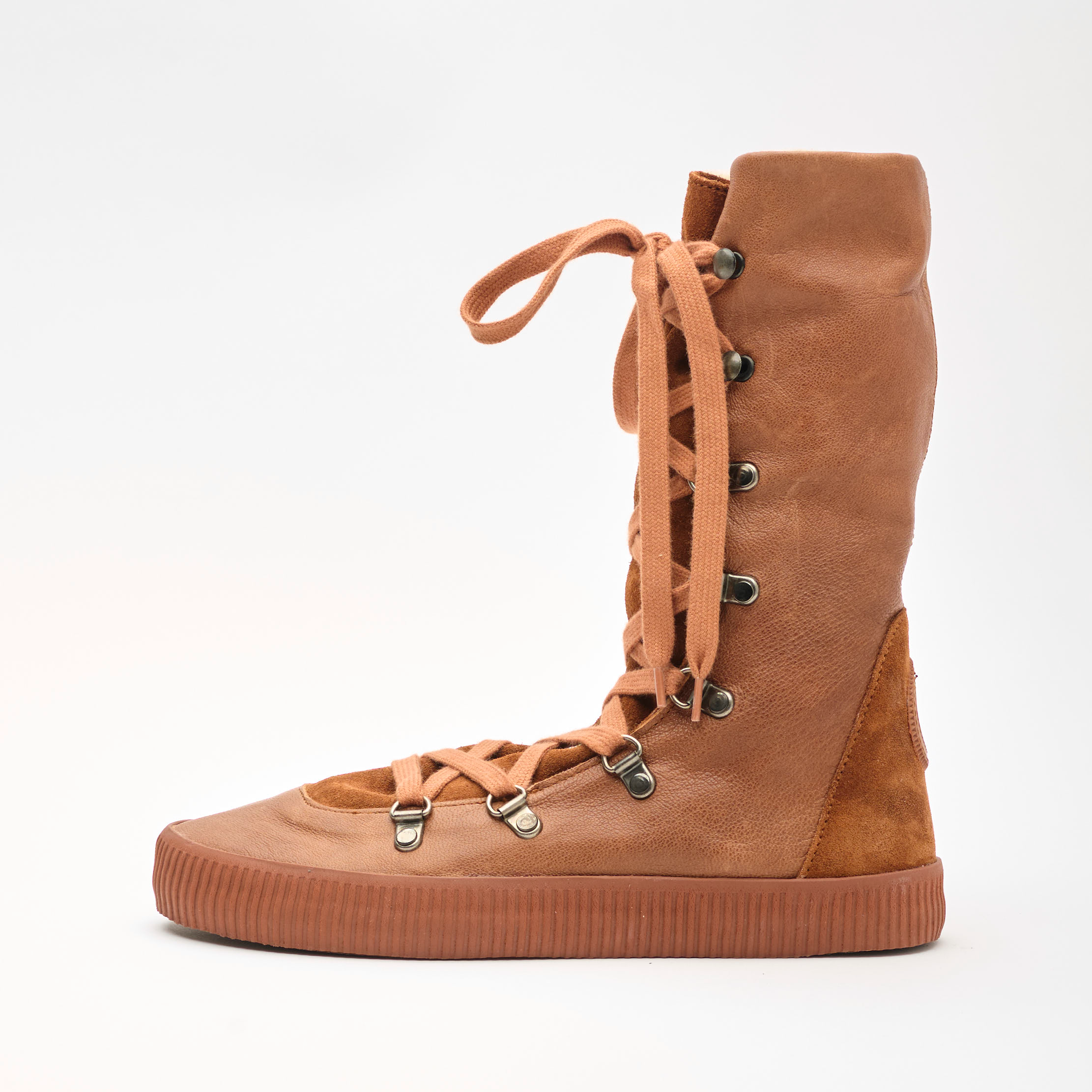 Bold, brown, and badass. Smooth leather meets suede, ribbed soles, and lace-up attitude — the Noelle H Old Iron in Dark Brown does not play small.