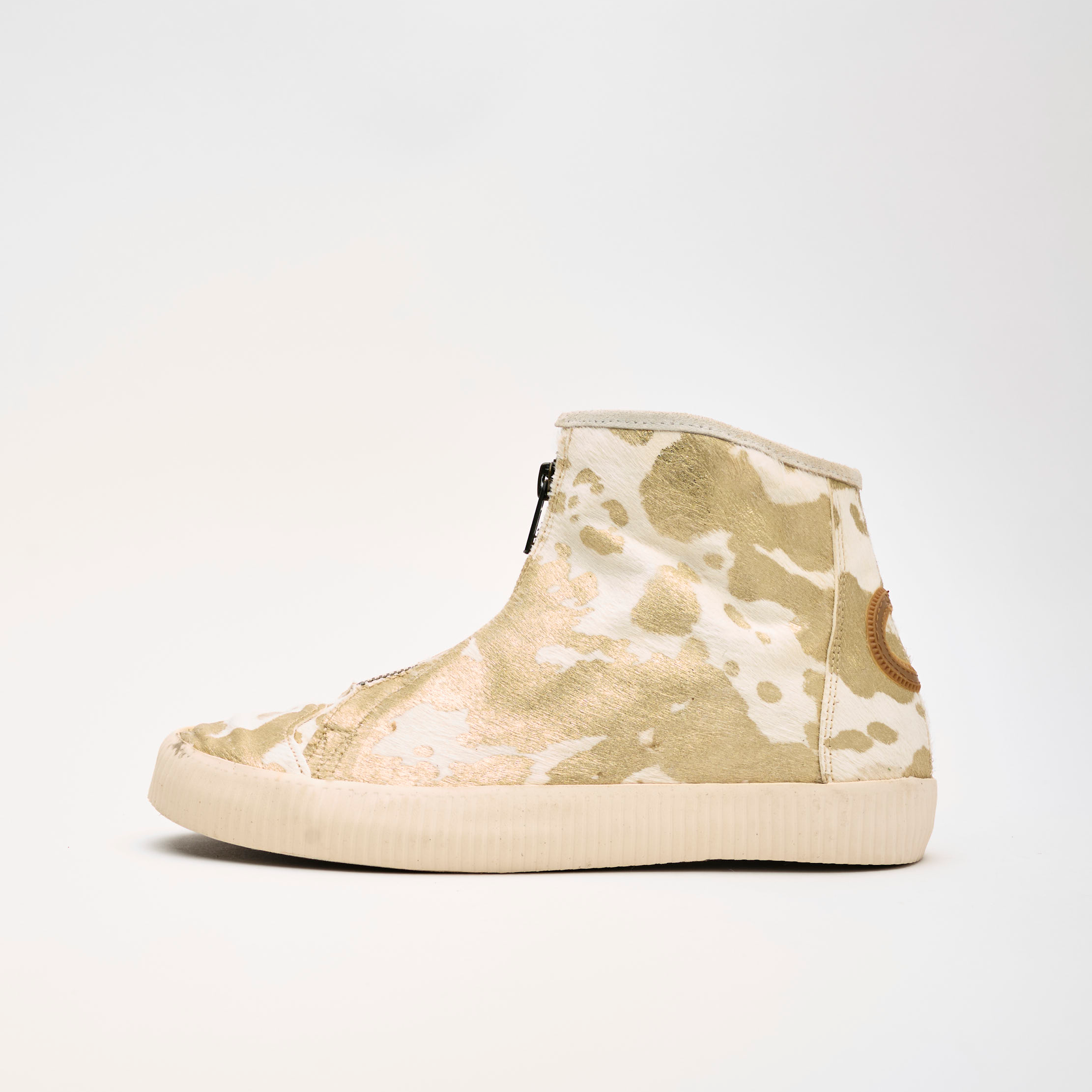A little luxury for your step.The Noelle Pony in Platinum pairs pony hair with metallic gold splashes, a cozy interior, thick ribbed soles, and a front zip — all-day comfort with a hint of shine.